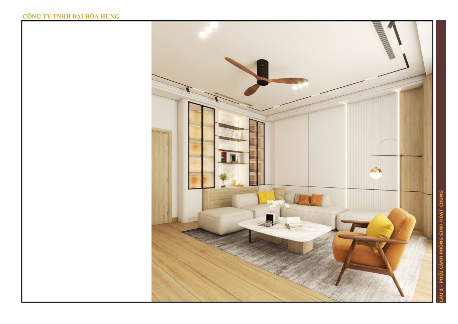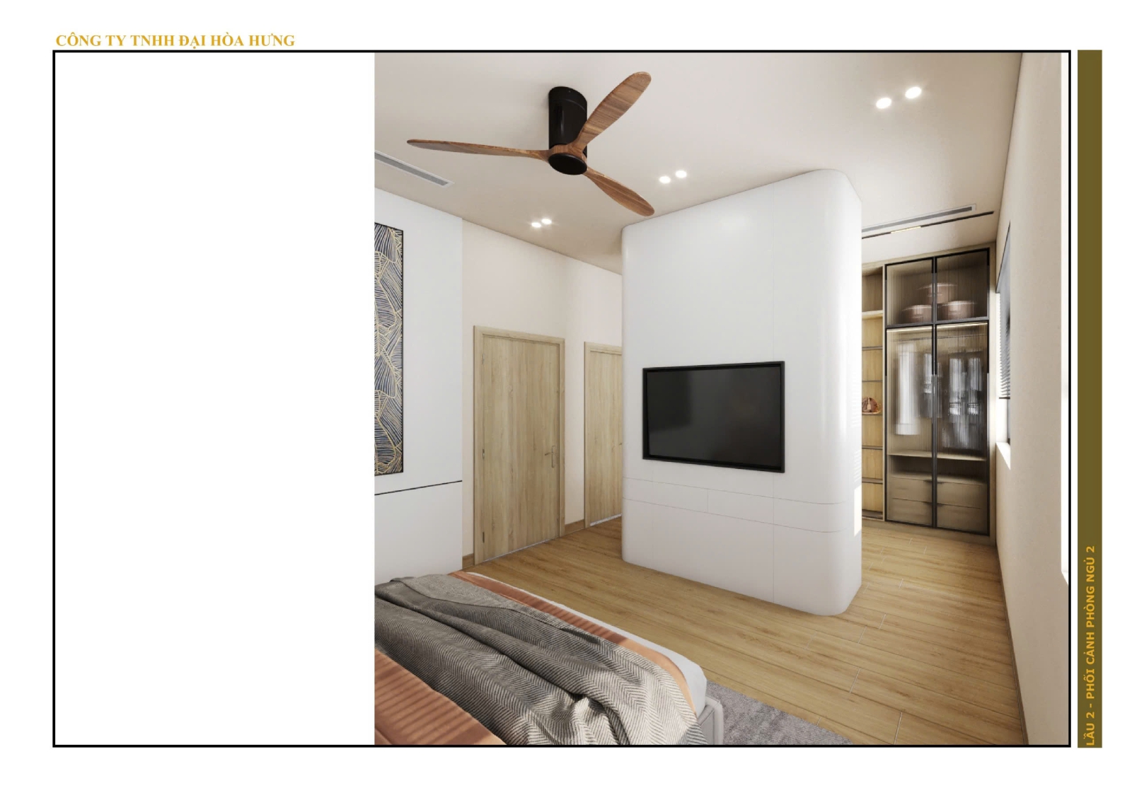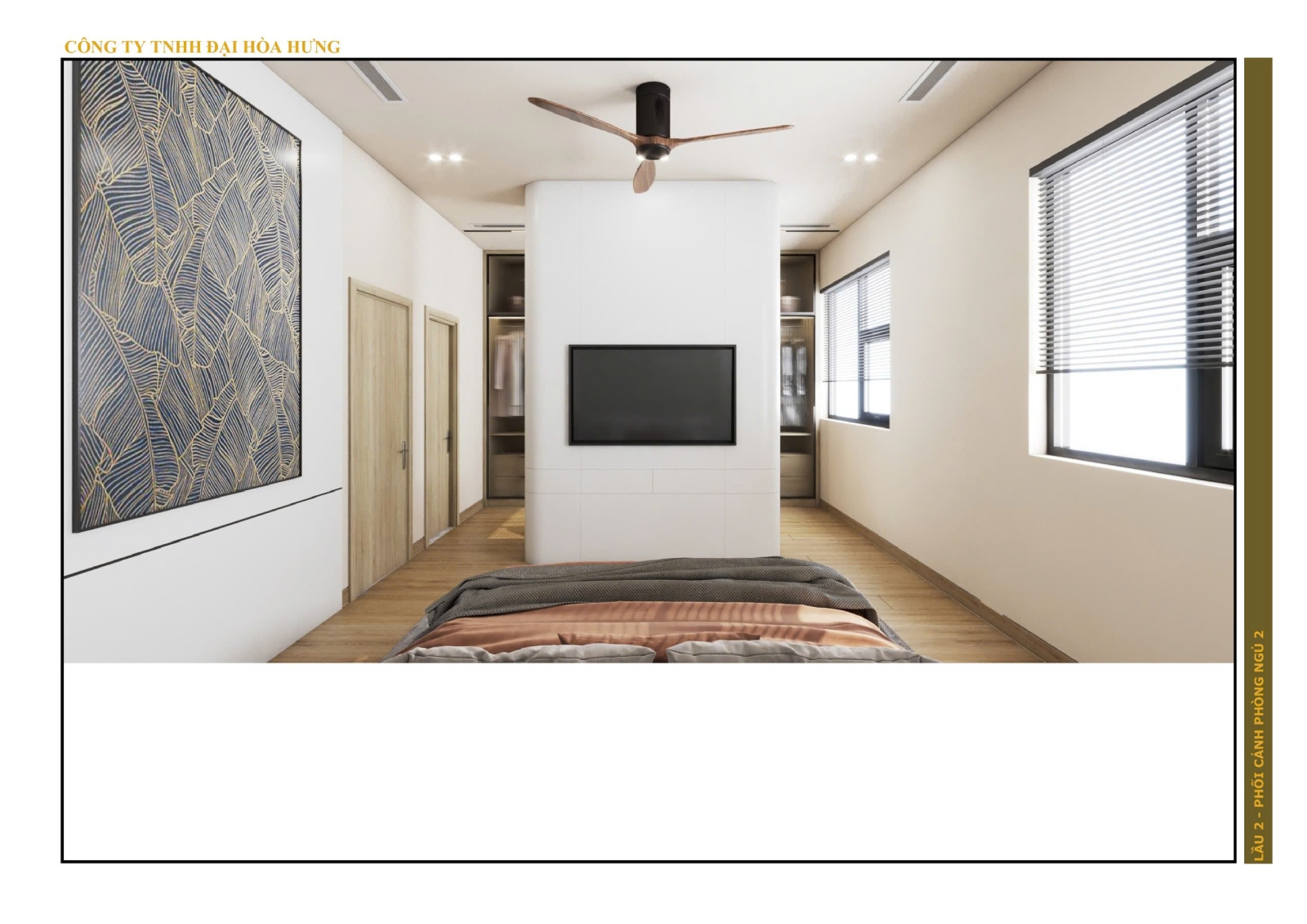 - Lầu 2: 2 phòng ngủ con (mỗi phòng có vệ sinh khép kín hoặc dùng chung), phòng sinh hoạt chung/giải trí.