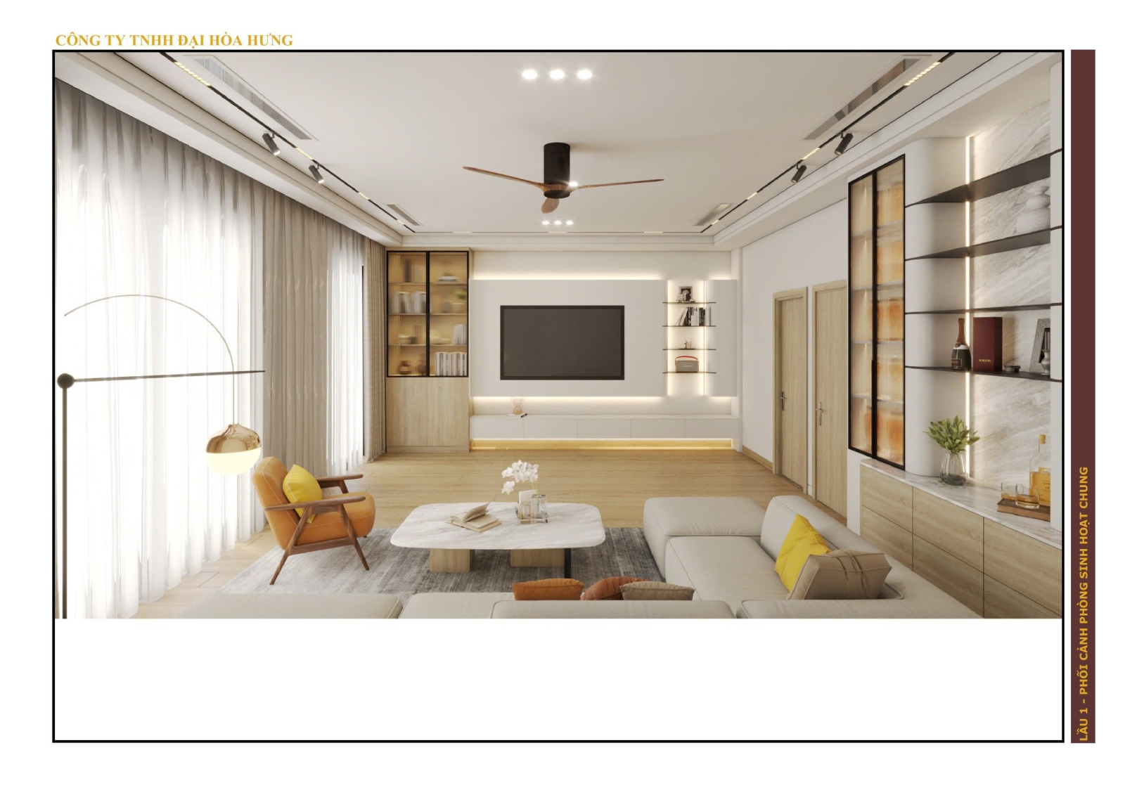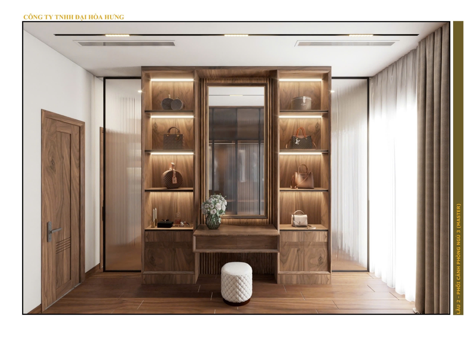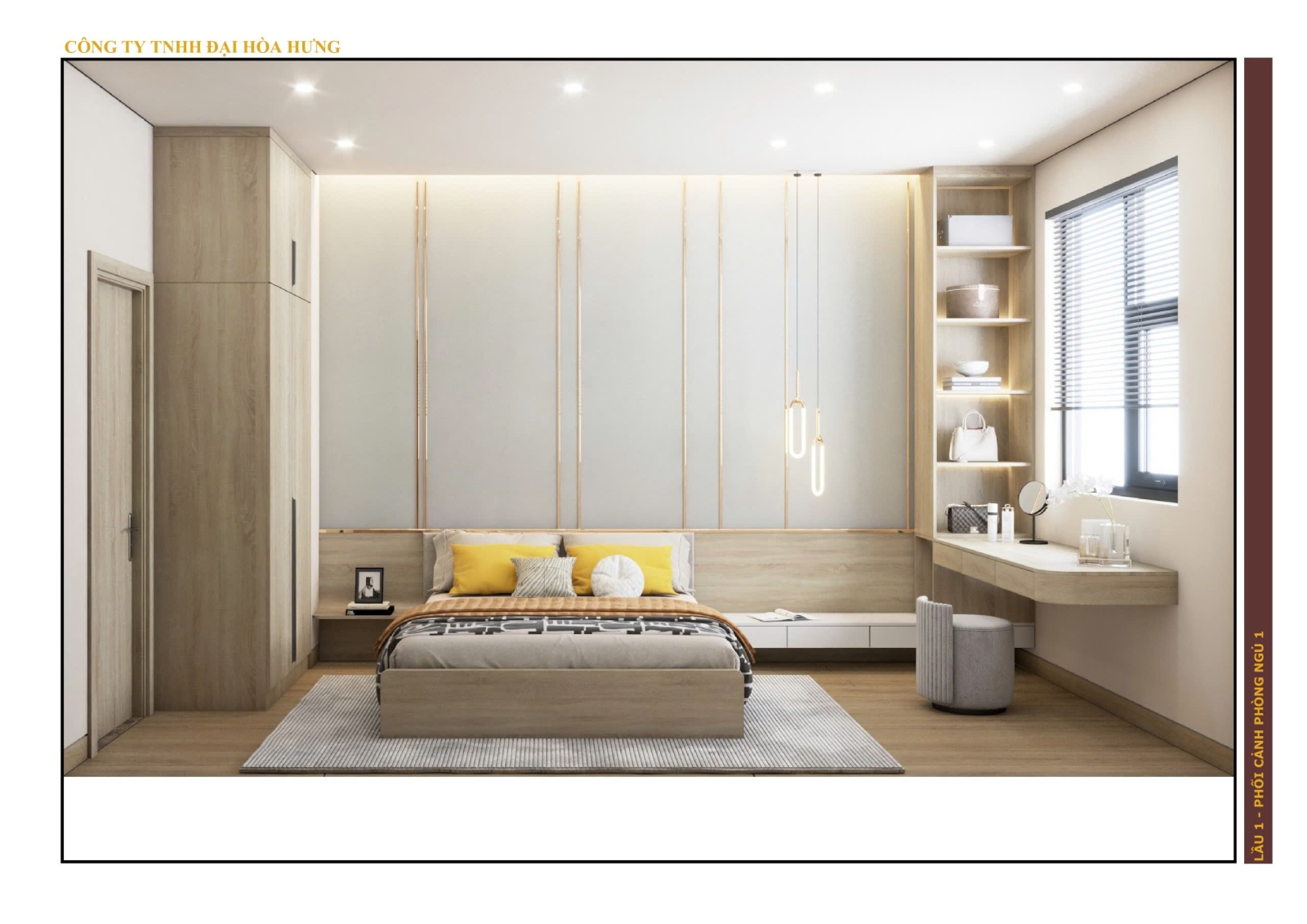 - Phong cách: Hiện đại kết hợp nét cổ điển nhẹ, sử dụng vật liệu cao cấp, tông màu trung tính ấm áp.