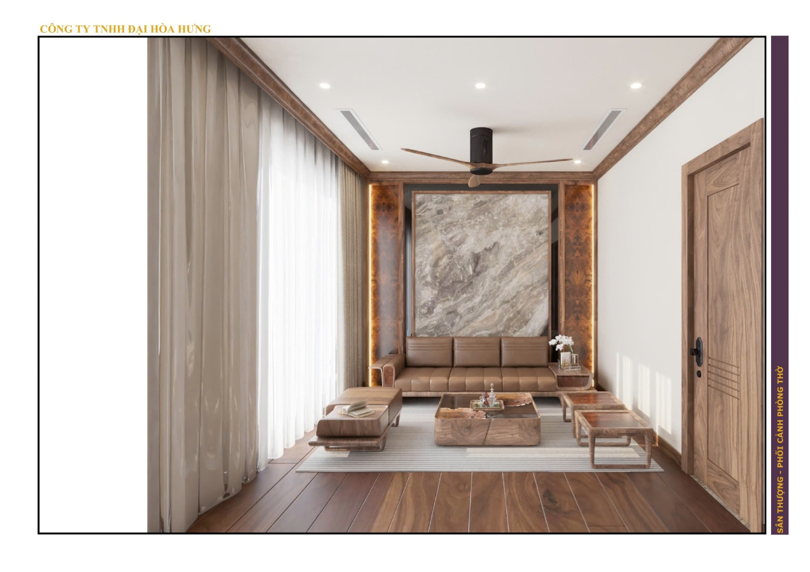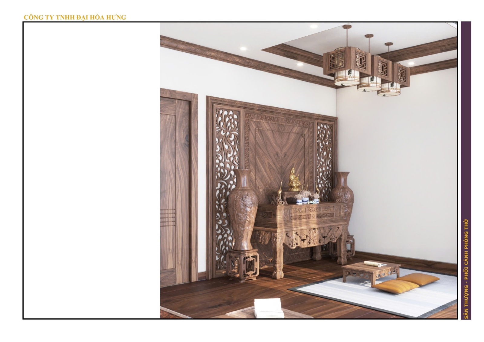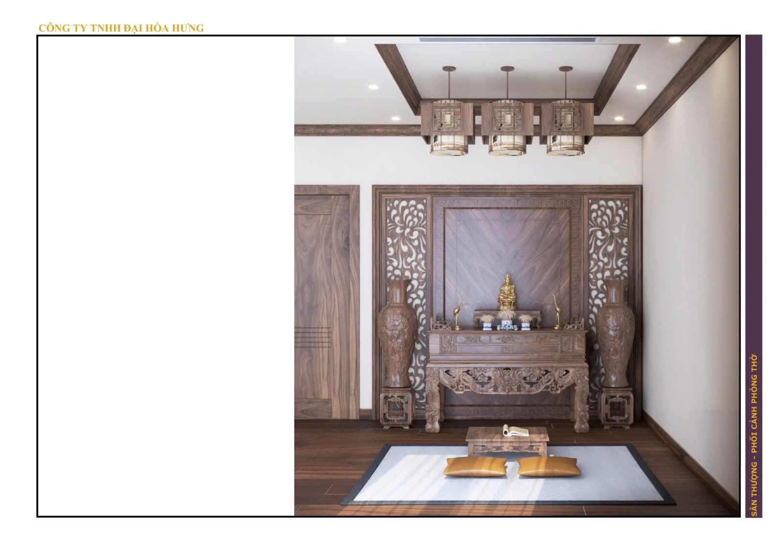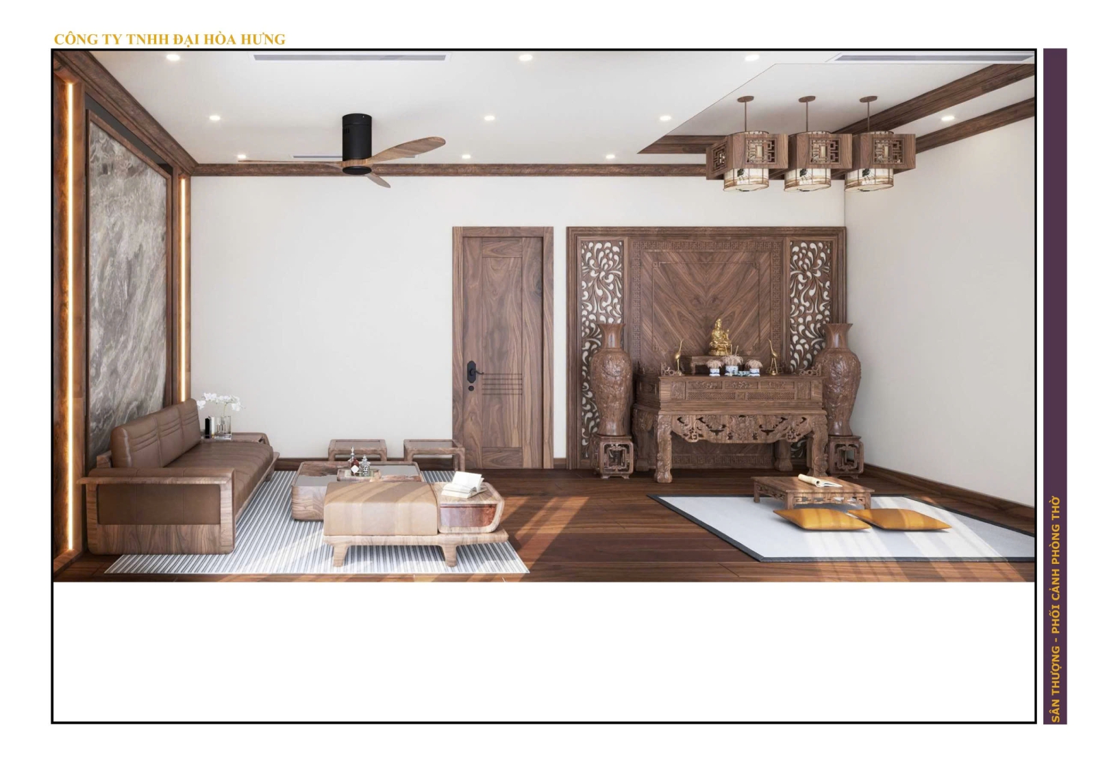 - Lầu 3 (tầng áp mái): Phòng thờ, sân phơi, sân thượng/tiểu cảnh, khu BBQ/giải trí ngoài trời.